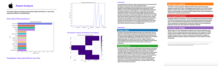 In this use case, we generated a four-page PDF report that provides a comprehensive overview of the analysis, starting with complete details of the websites and media outlets where relevant news stories on the researched topic were found.