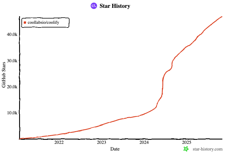 El repositorio de Coolify tiene más de 46K Stars en GitHub.